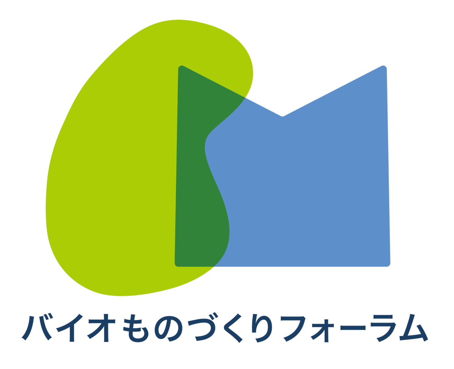 Bioの「B」の形を模した左側の図形は、バイオ技術のはじまりともいえる発酵に関わる菌をイメージした有機的な形状になっています。一方、Manufacturingの「M」をイメージした右の図形は、工場や工学をイメージした人工的な形状です。このニュアンスの違う図形同士を重ね合わせることで、2つの違った立場の人たちをつなげる役割を持ったフォーラムを表現しました。